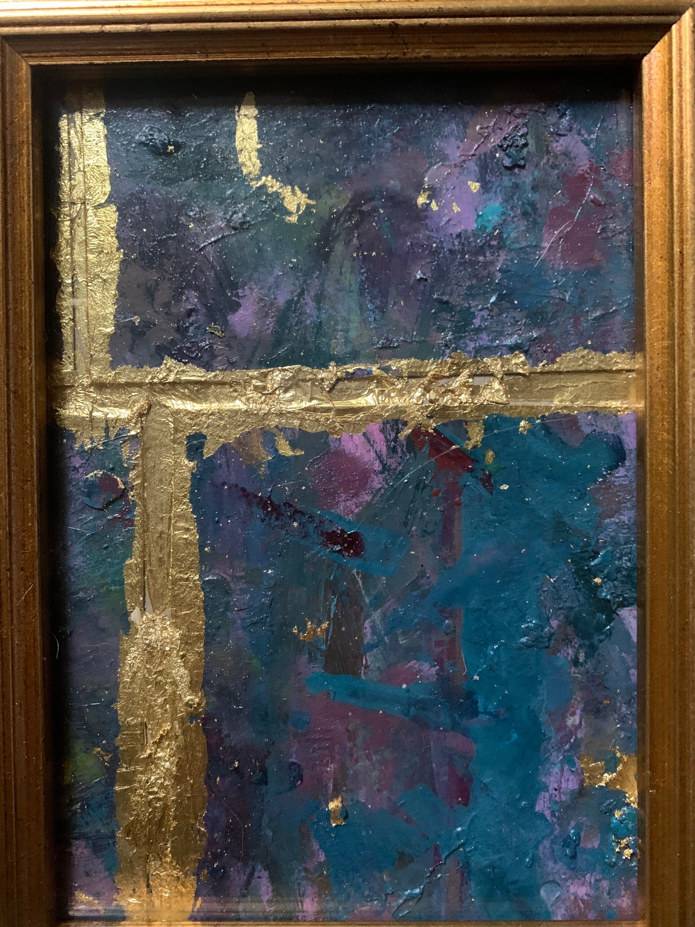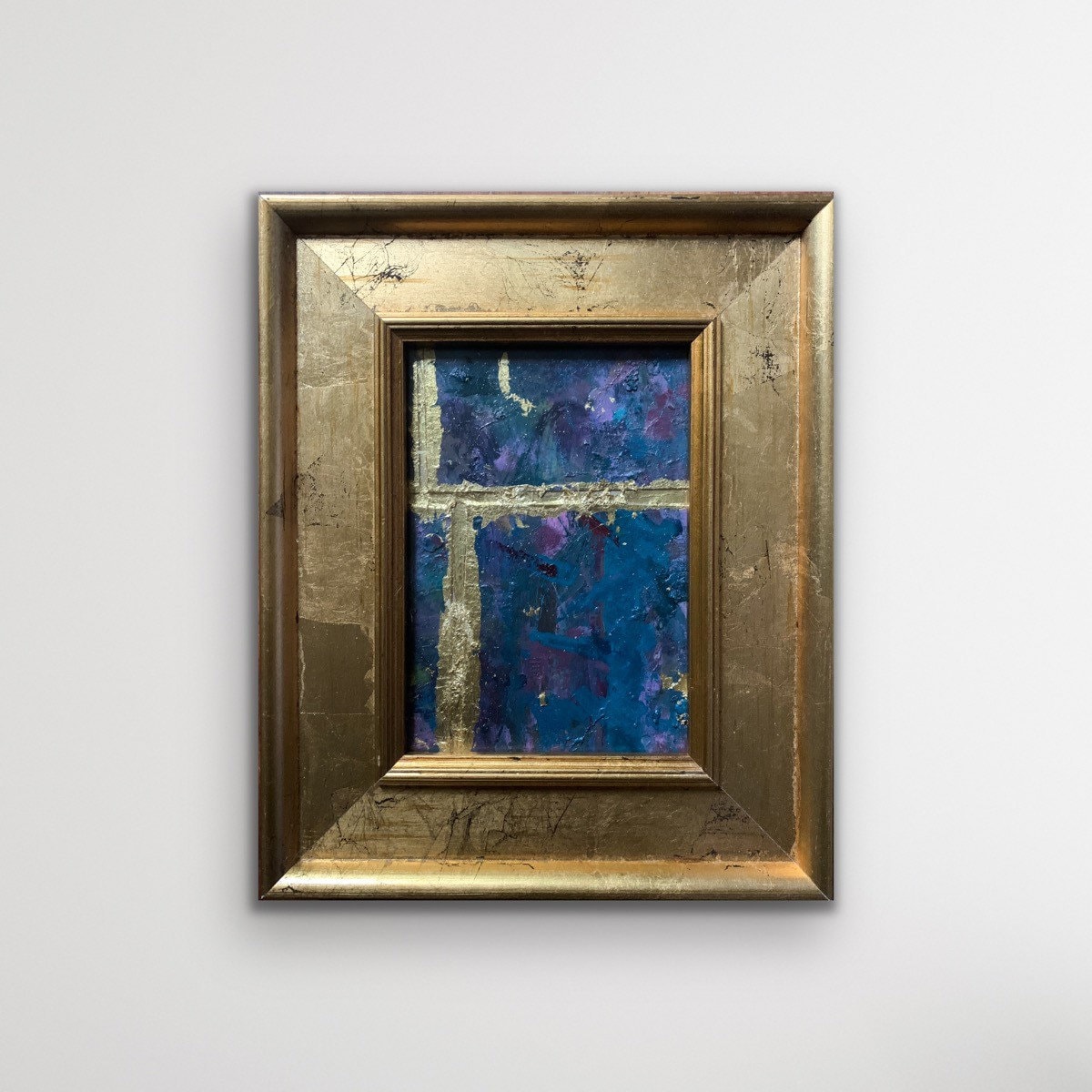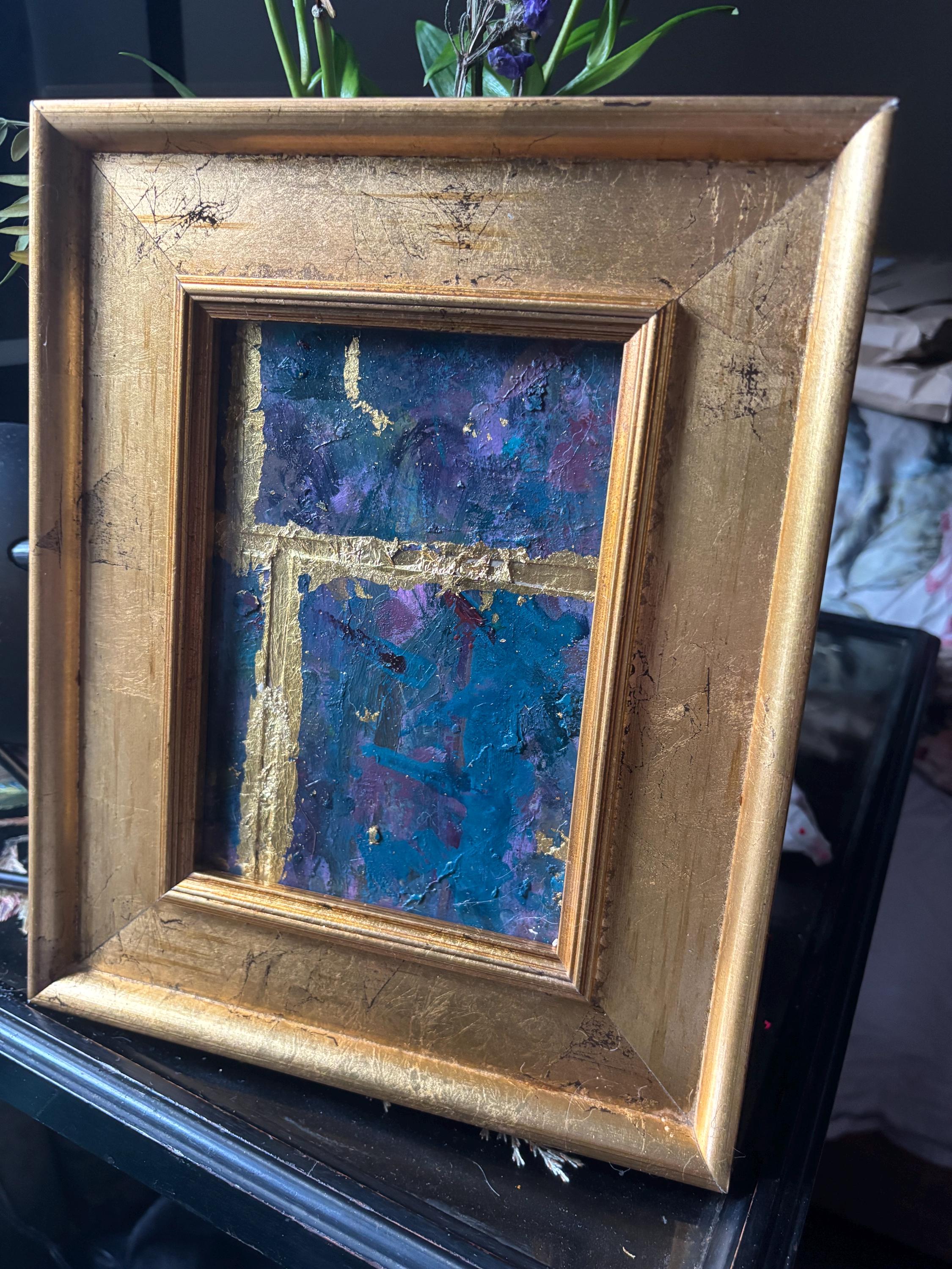 Deep midnight blues and purples swirl against the gold leaf moody, atmospheric and completely one of a kind.