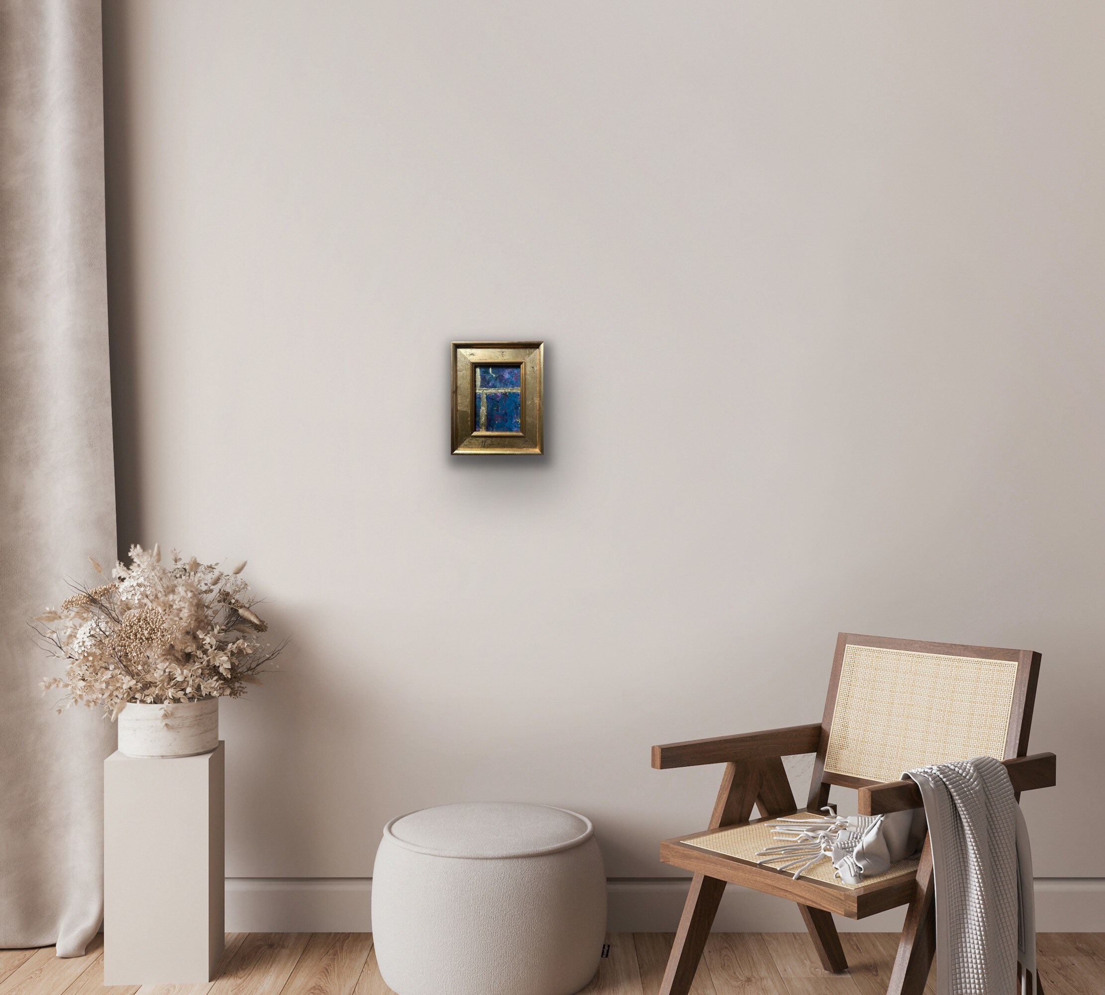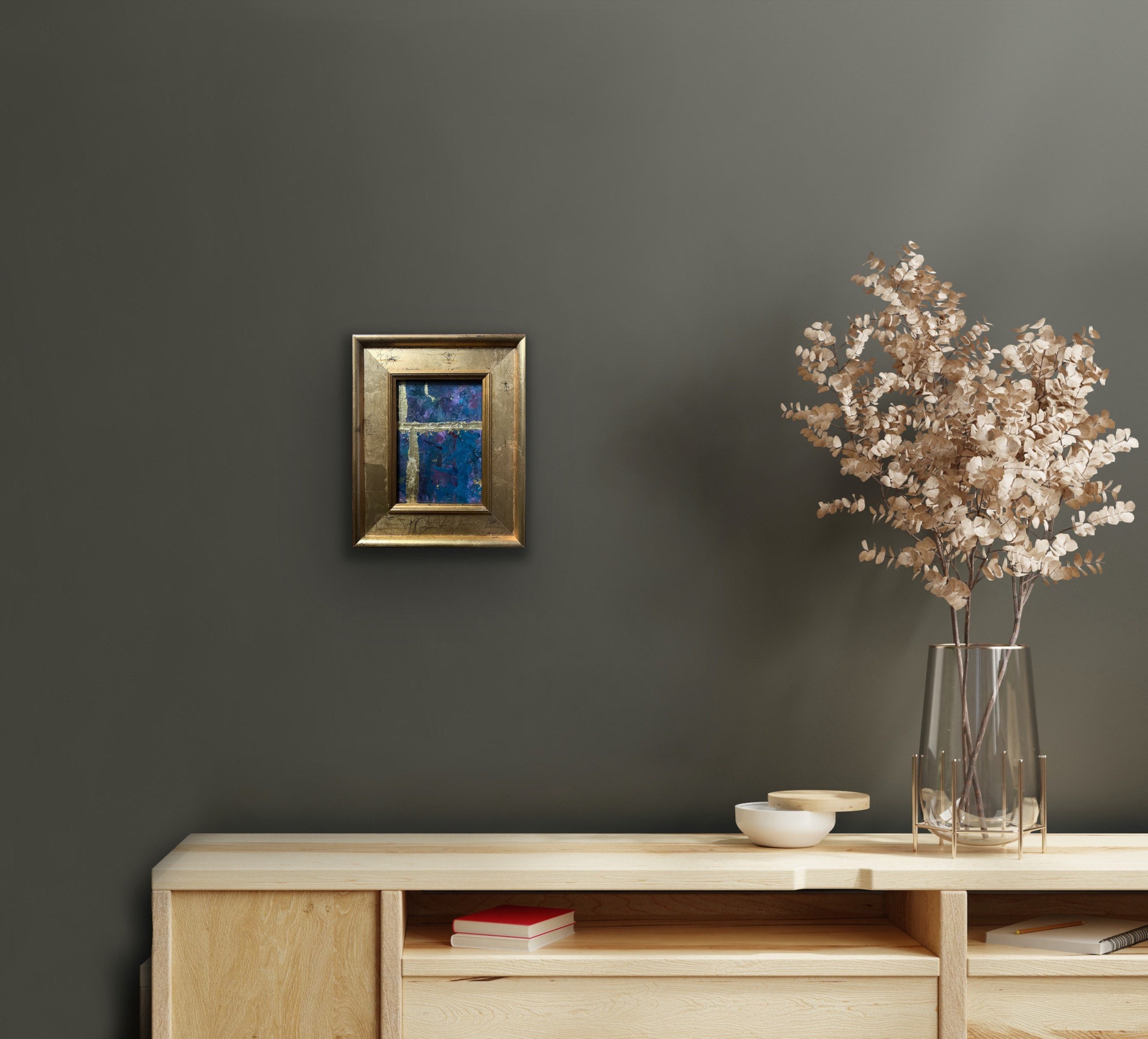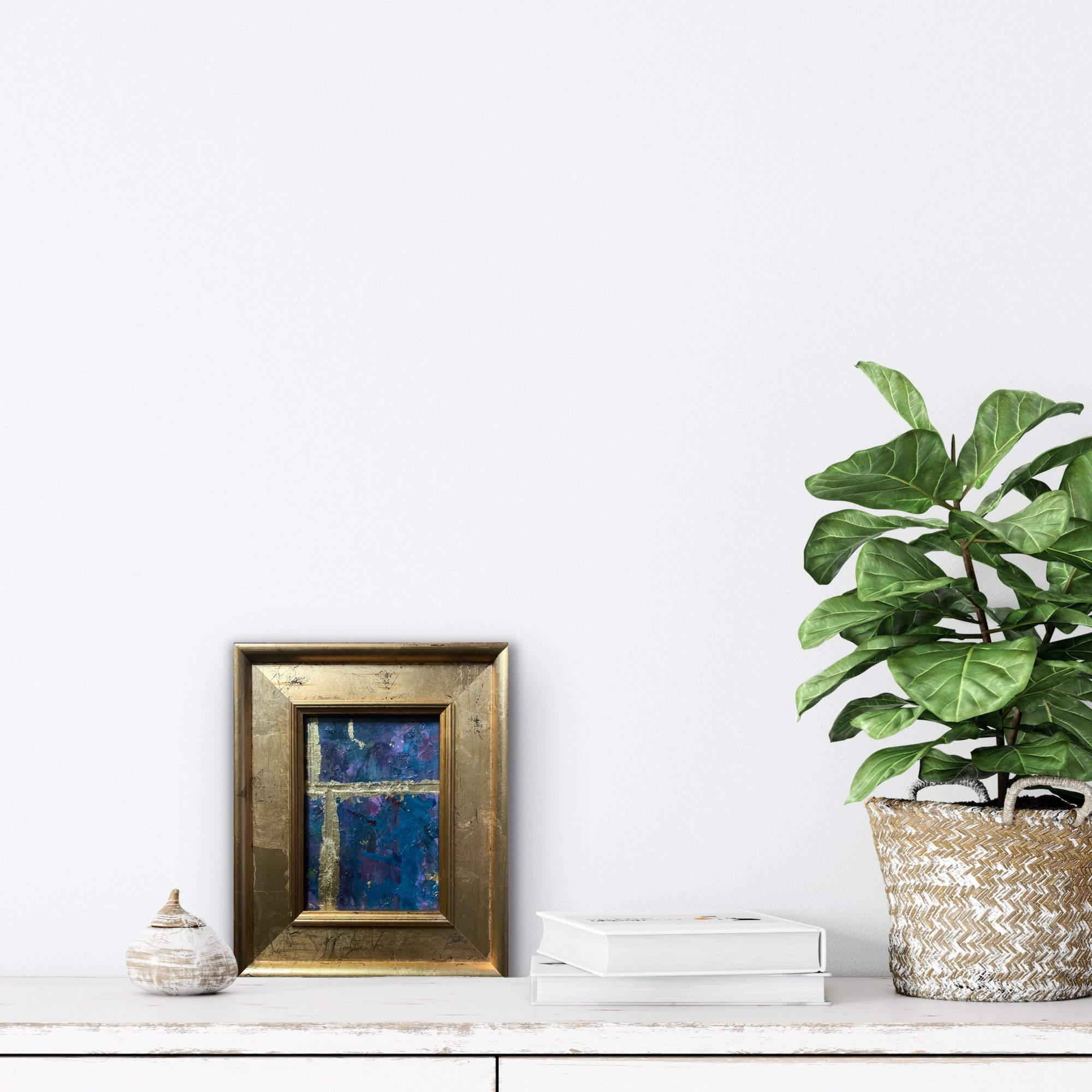 Deep midnight blues and purples swirl against the gold leaf moody, atmospheric and completely one of a kind.